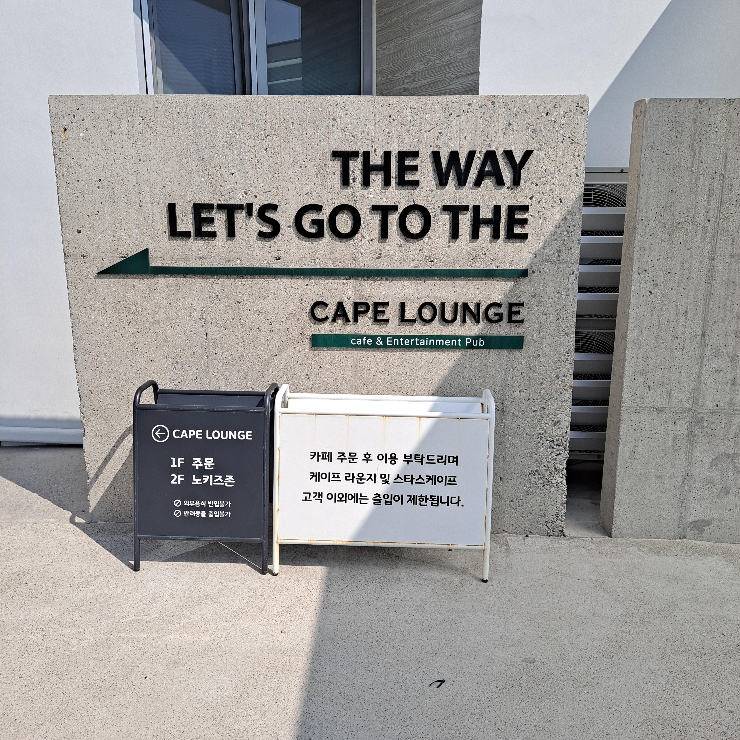 외부음식 반입금지, 애완동물 출입금지입니다. 호미곶에 유채꽃을 보러 갔다가 케이프 라운지에 왔습니다. 또한 이종석 주연의 빅마우스 촬영지이기도 하다.