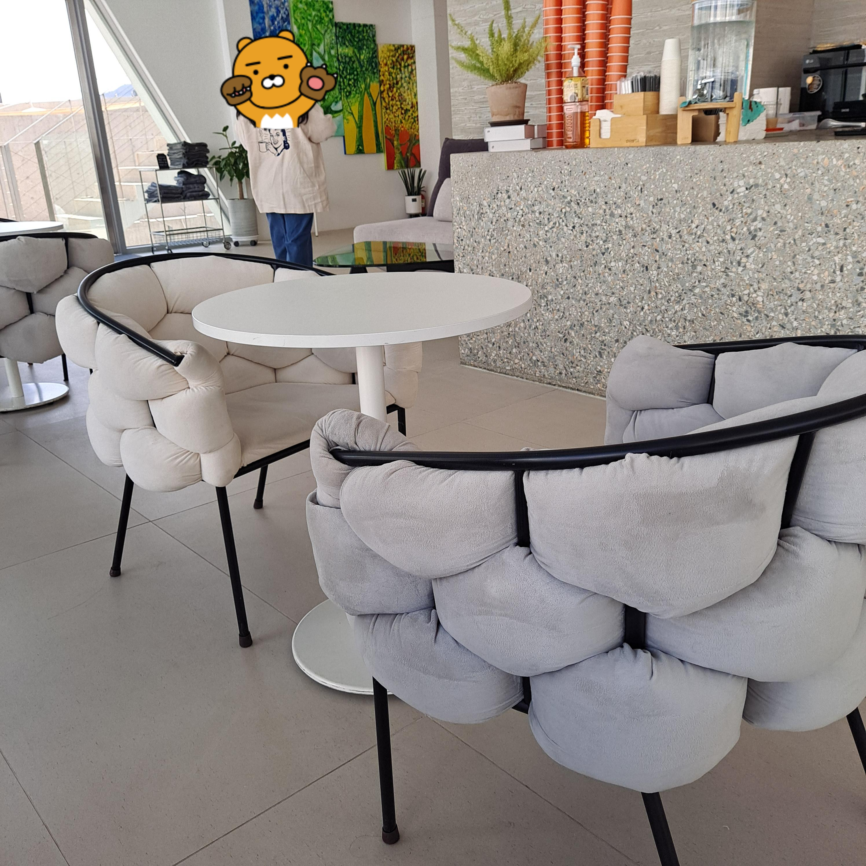 독특한 점은 의자가 포도처럼 내부로 돌출되어 있다는 점이다. 앉아보니 생각보다 편하네요.