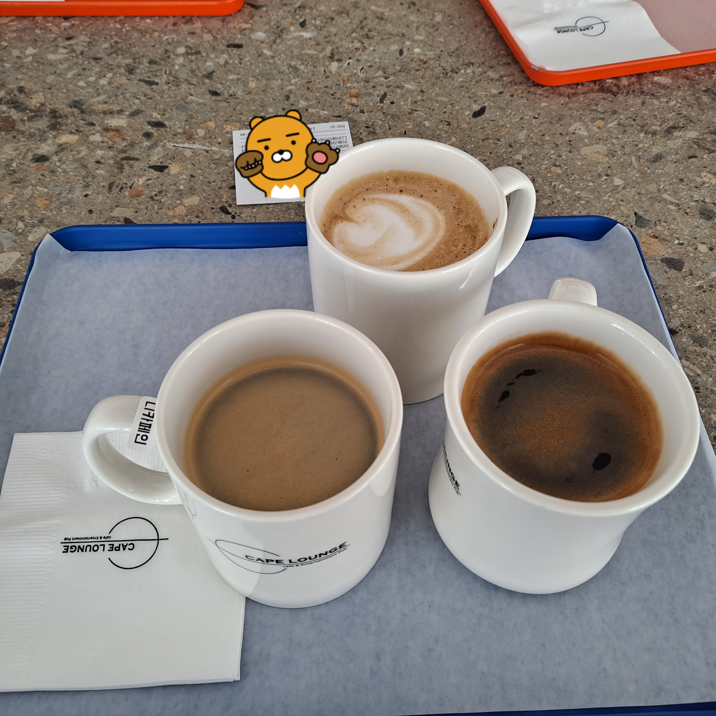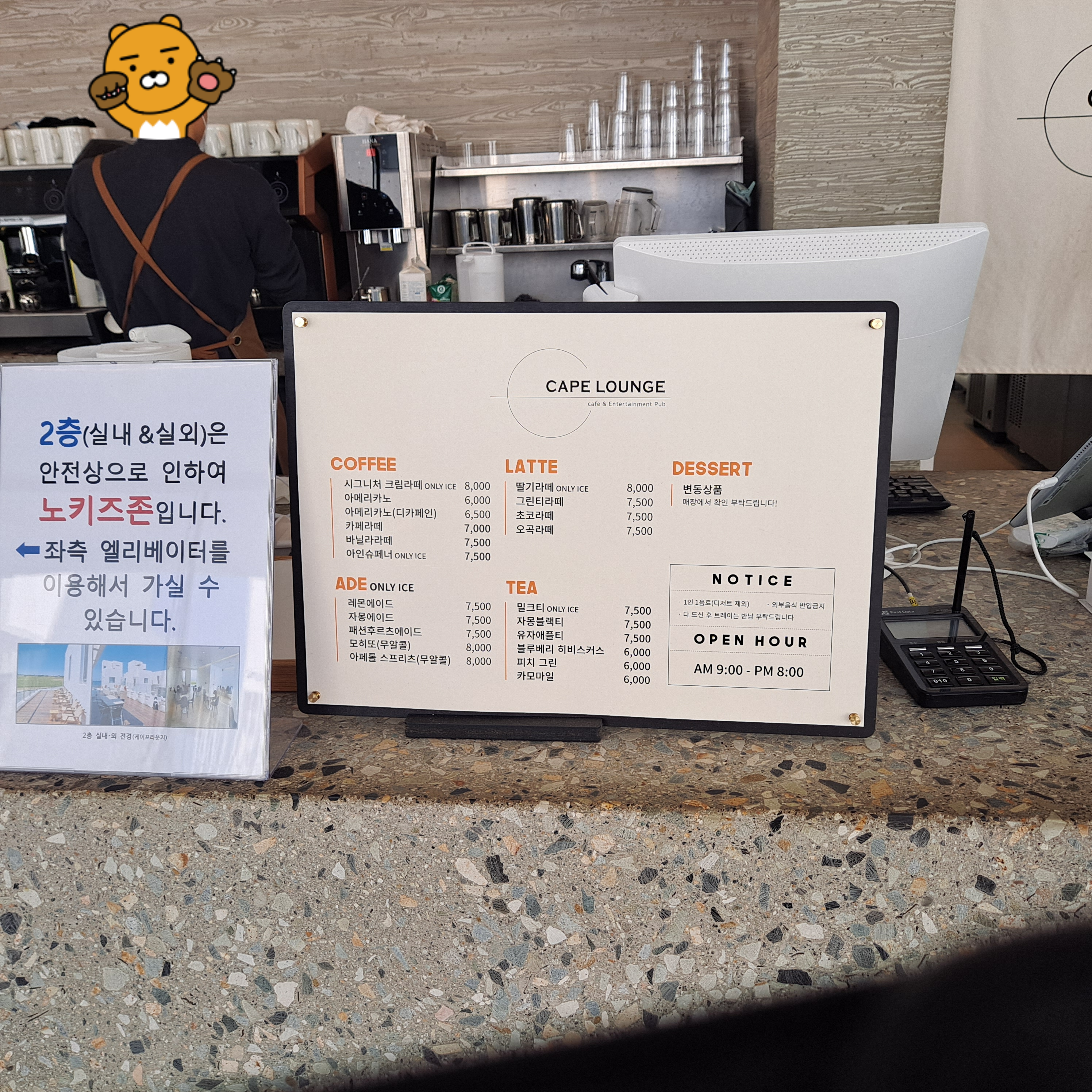 1층은 자리가 많지 않아 2층으로 갈 수밖에 없었지만 안전상의 이유로 2층은 키즈존입니다. 커피값은 제주도만큼 비싼 것 같다. 바다에서 할 수 있는 일이 없는 것 같습니다.