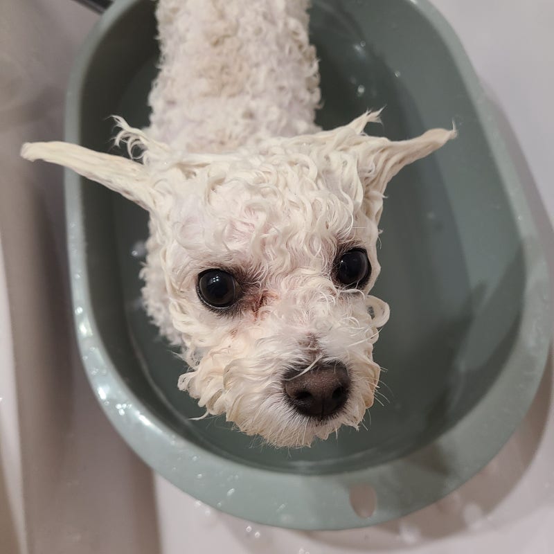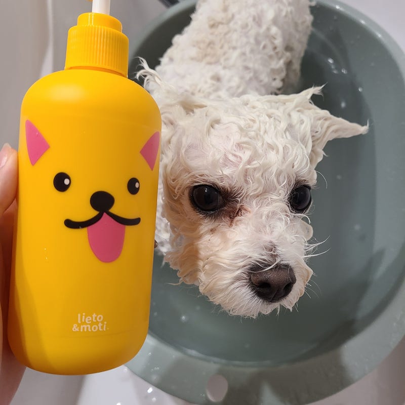 산책을 다녀왔으니 애견 샴푸로 깨끗한 목욕을 합시다.