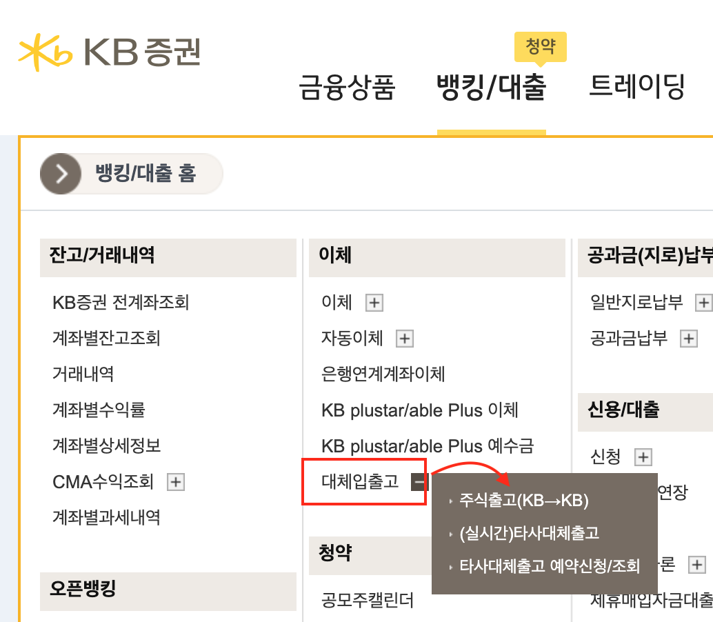 KB증권으로 대체된 잔액은 즉시 확정됩니다.