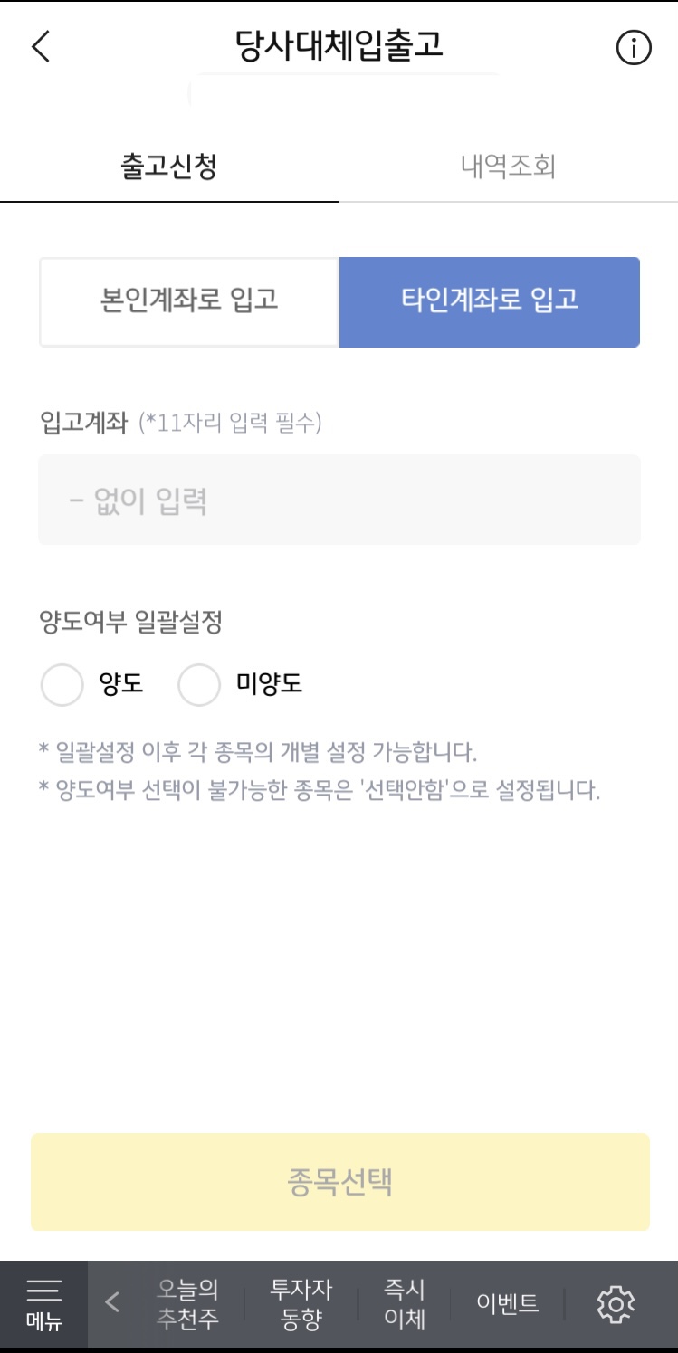 어제에 이어 오늘은 유안타증권 주식을 KB증권으로 대체하는 방법에 대해 알아보겠습니다. 나는 그것을 사용하고 있습니다. 1. 홈 화면의 은행/계좌/대출2. 환적 항목에서 Shipment(Yuanta-Other Company)를 클릭하면 ‘Third Company Shipment’가 표시됩니다.